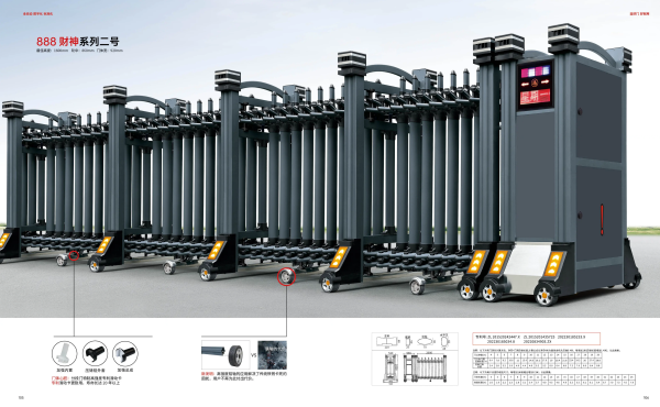 可定制无轨、单轨,标配遥控开门、可定制车牌识别开门、手机远程开门。